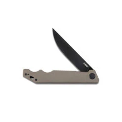 Kubey Pylades Liner Lock Folding Knife Tan G10 Handle AUS-10 Plain Edge Blackwash Finish KU253C